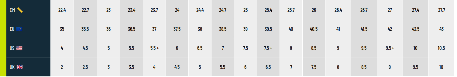 Schnürsystem für eine schnelle, einfache und präzise Einstellung. Es ermöglicht schnellere und kraftvollere Richtungswechsel. Hergestellt aus langlebigen, hochwertigen Materialien, die auf jedem Terrain getestet wurden.